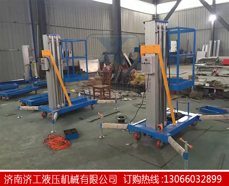 單柱鋁合金升降機(jī):該系列產(chǎn)品為室內(nèi)型,廣泛適用于星級酒店,大型超市等各行業(yè)大廳、廠房內(nèi)的高空作業(yè), 具有升降平衡,操作方便,能進(jìn)入一般門廳,可隨意進(jìn)出電梯且耗電少、工作時不傷 地面,可用于貼墻工作及探出作業(yè),工作無死角。