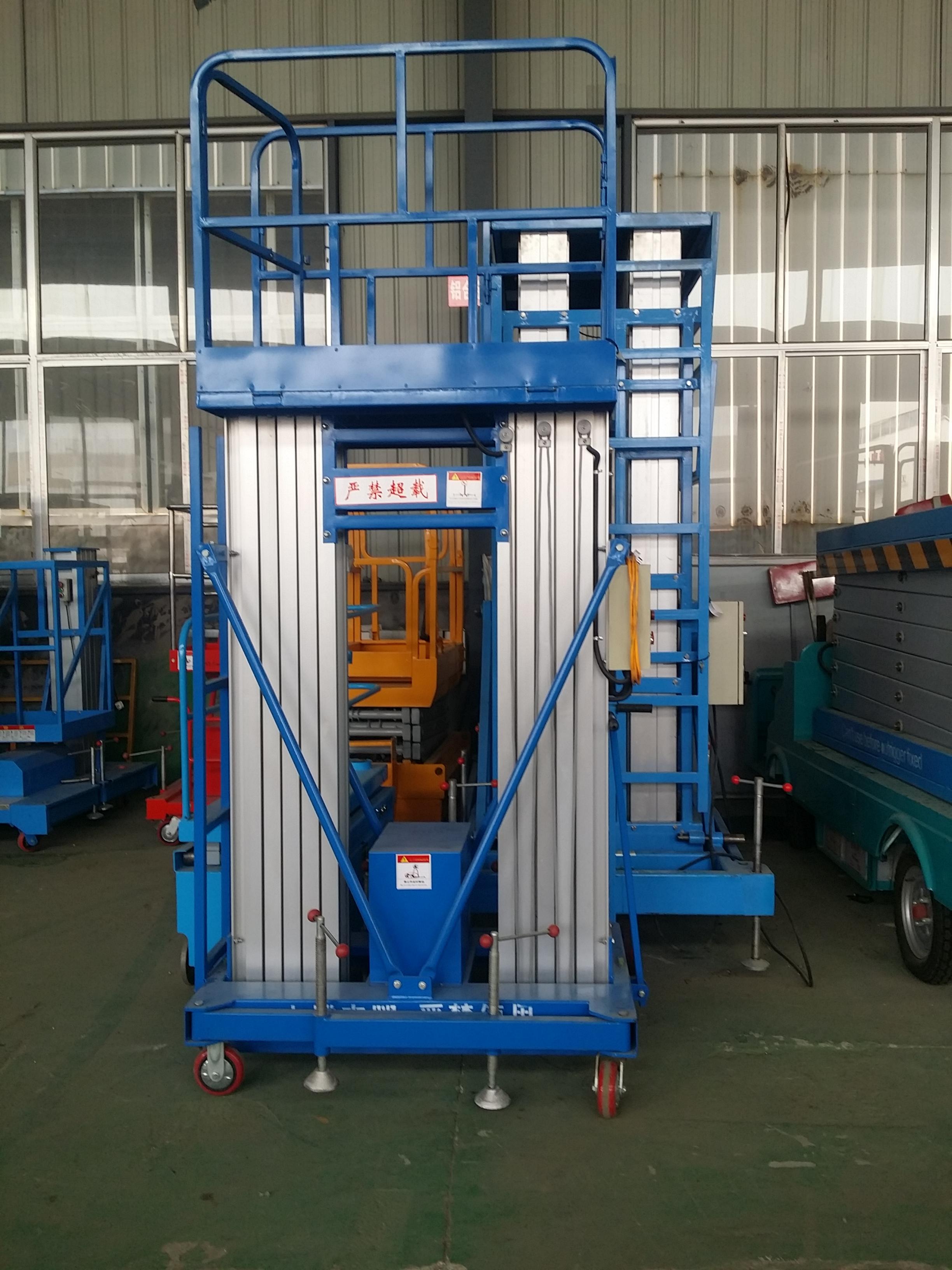 鋁合金液壓升降機采用高強度優(yōu)質(zhì)鋁合金材料,具有造型美觀、體積小、重量輕、運轉(zhuǎn)靈活,推行方便。升降平穩(wěn)、安全可靠等優(yōu)點。它輕盈的外觀,能在小的空間內(nèi) 發(fā)揮高的舉升能力。鋁合金液壓升降機廣泛用于工廠、賓館、餐廳、車站、影劇院、展覽館等場所,是保養(yǎng)機具、油漆裝修、調(diào)換燈具、電器、清潔保養(yǎng)等用途的安全伴侶。