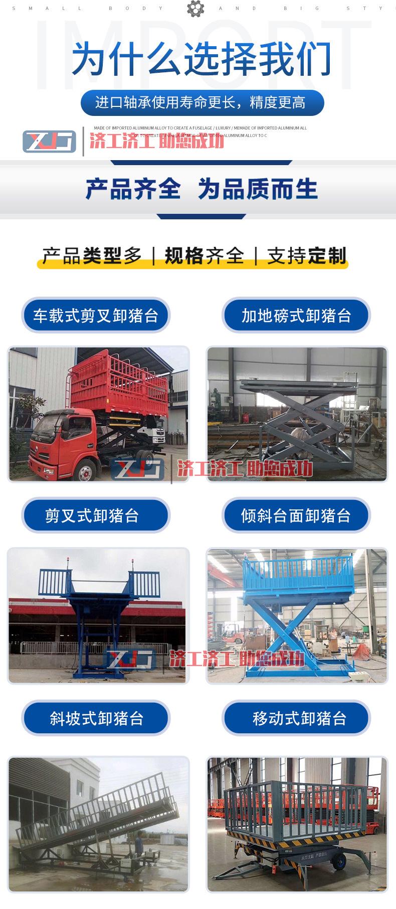 濟工廠家專業(yè)加工定制 電動液壓升降平臺卸豬臺,養(yǎng)豬場卸豬臺。用于屠宰場和養(yǎng)殖場等場所,方便豬快捷地走入車間內,兩側設有柵欄,防止豬摔傷,可利用卸豬臺連接貨車與地面,缷豬臺(上豬臺)坡度要小于等于20度,讓豬緩慢自行上下車,便于轉移運輸,避免摔傷。